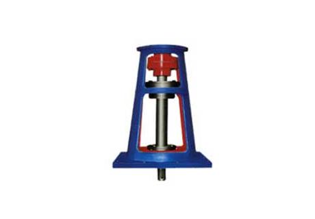 J-B型:用于立式減速機的出軸為Ⅱ型,聯軸器型式為HL型或GT型聯軸器。該機架帶中間支承,適用于攪拌器傳來的軸向較大時使用,當選用HL型聯軸器時,攪拌軸必須在反應器內或填料箱中設有支承若選用夾殼型軸頭,為民避免超定位,建議選用JQW型無懸吊環的夾殼聯軸器。
